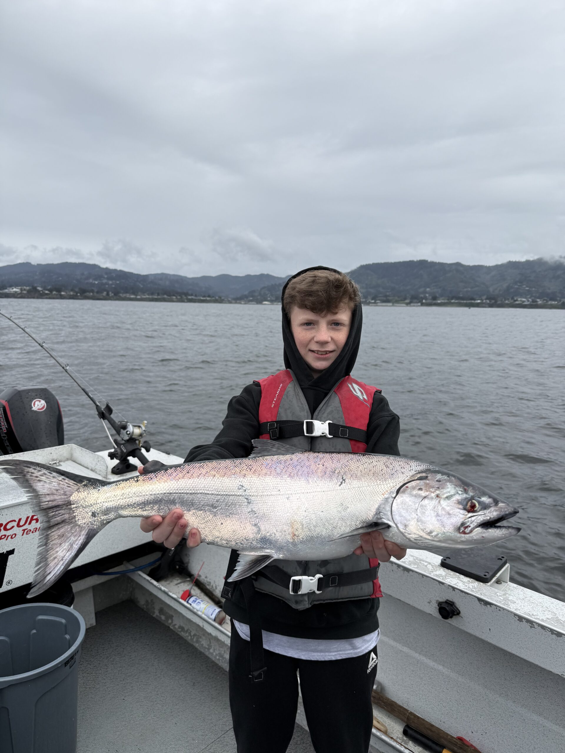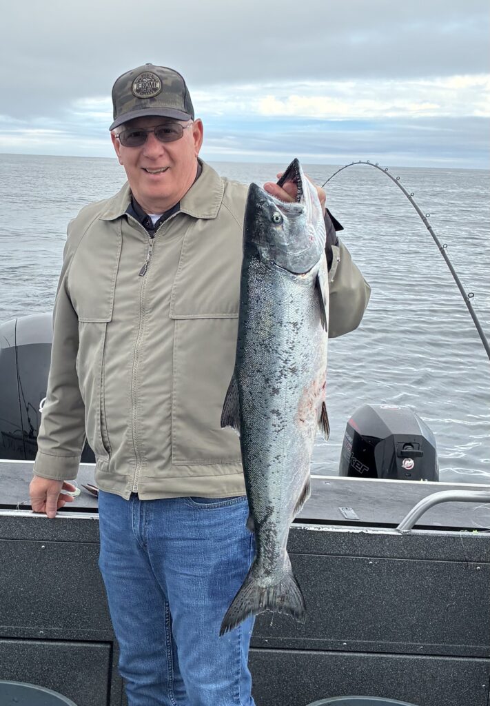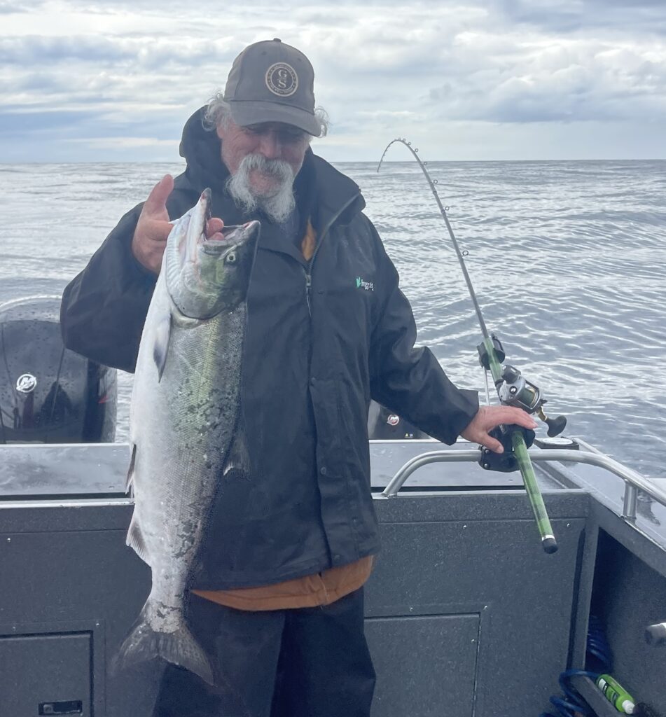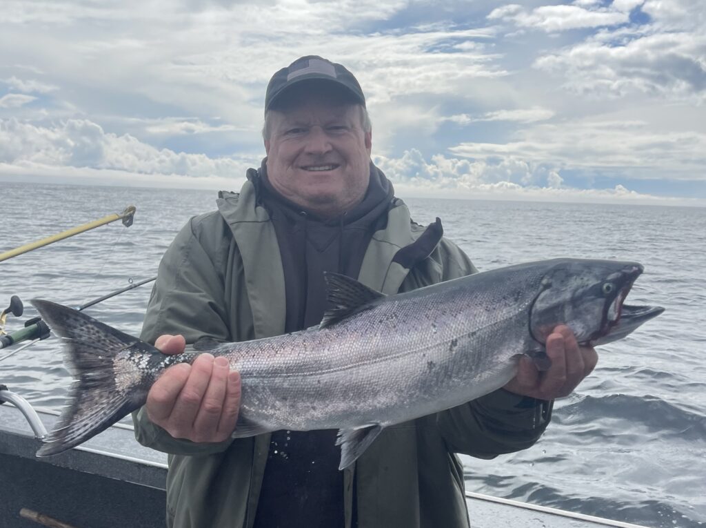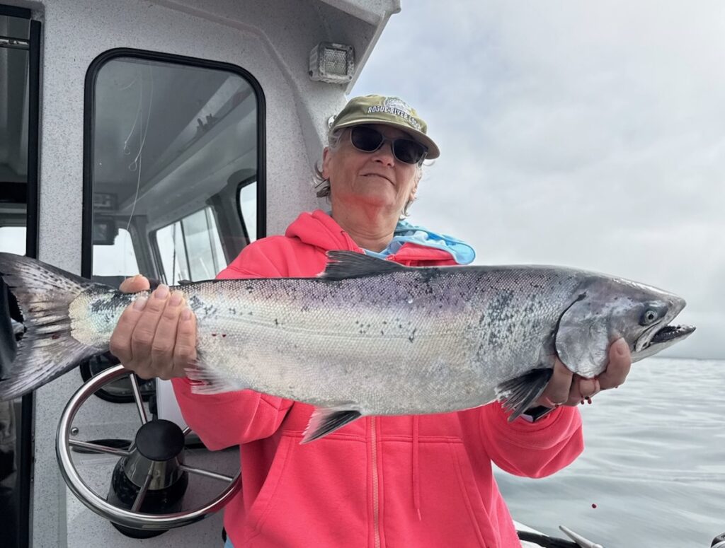 With abundant schools of baitfish off of Brookings, the size of the salmon is quickly increasing. The salmon are known as “feeder kings,” as they put on weight and size before returning to rivers in the fall to spawn. Some of the salmon will spend another year in the ocean, returning in 2027.